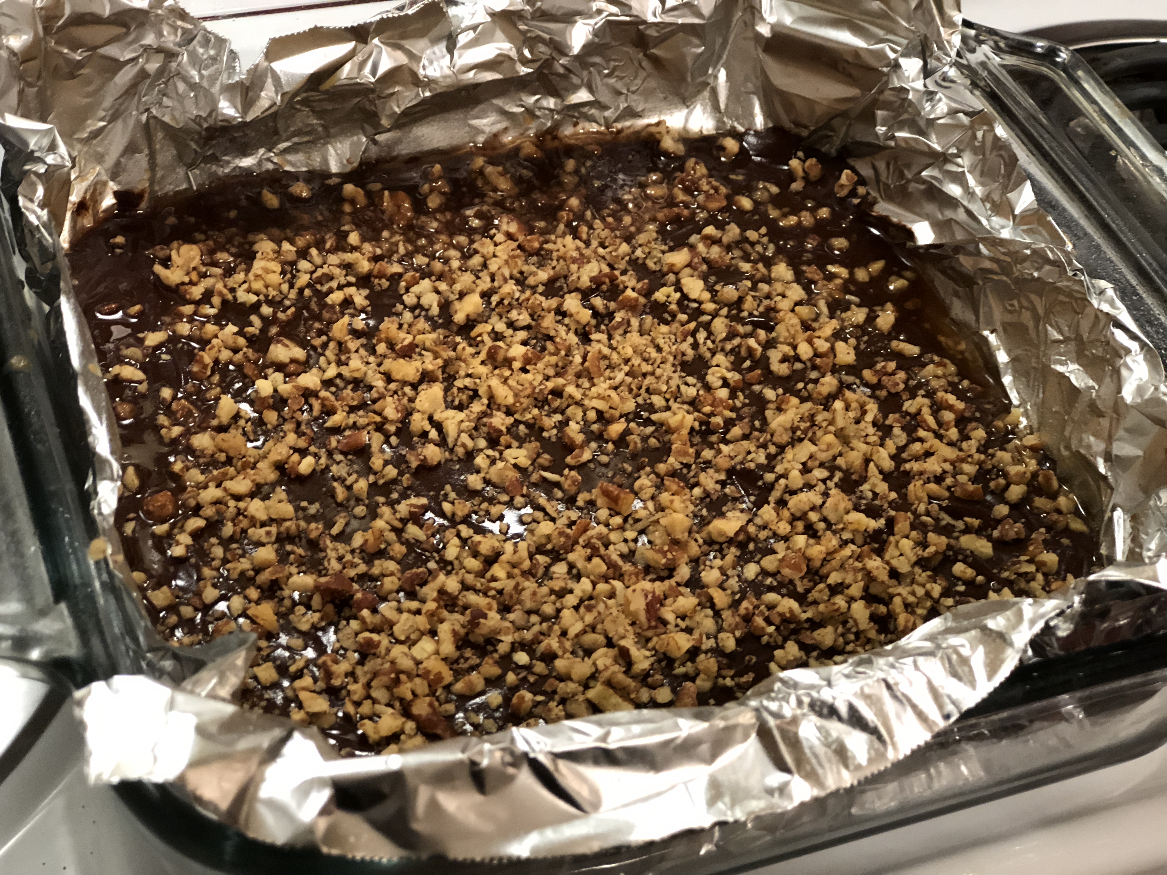 - Using a microwave slowly melt your chocolate chips (do this in 20 - 30 second intervals). Once melted gentle spread over the cooled toffee.Sprinkle with your chopped nuts and refrigerate until set.Remove when set.ENJOY!