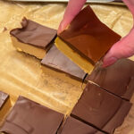 Pou over and spread onto your peanut butter layer. Refrigerate until hardened. Cut into bars.