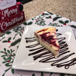 Add half of raspberry puree. Swirl with a knife, or skewer. Add remaining cheesecake filling. Repeat swirl.