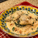 Add the heavy cream, chicken broth, garlic powder, italian seasoning, and parmesan cheese. Whisk over medium high heat until it starts to thicken. Add the spinach and sundried tomatoes, and basil. Let it simmer until the spinach starts to wilt. Add the chicken back to the pan and warm through.